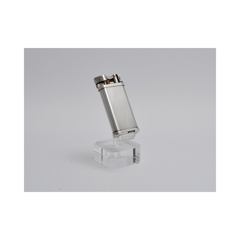 L’accendino Unique è stato il primo modello creato dalla Maison Dunhill nel 1924 e le versioni contemporanee offrono lo stesso equilibrio tra affidabilità ed eleganza. Questa versione è placcata argento e presenta una decorazione a linee verticali.