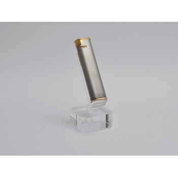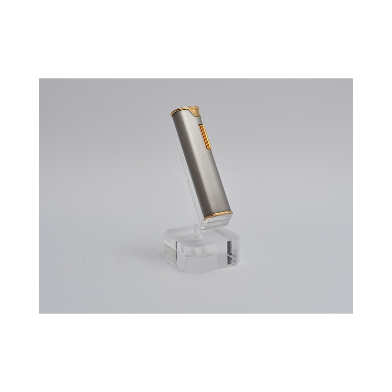 Questo accendino della Maison Dunhill appartiene alla Linea Dress, dalla caratteristica forma slanciata. La versione proposta è placcata argento con finiture in oro.