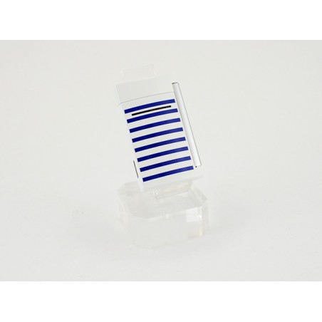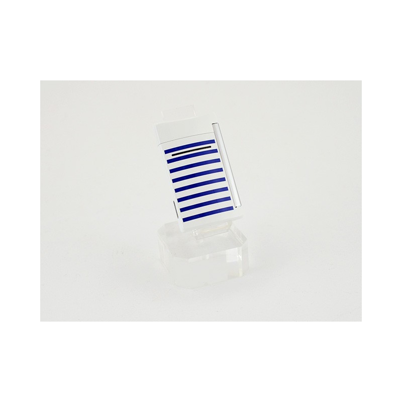 Una nuova generazione di accendini tascabili firmata S.T. Dupont: i Minijet sono discrezione, potenza e perfetta ergonomia e, con la loro potente fiamma antivento (jet flame), sono i compagni ideali per i fumatori di sigari, ma non solo. Questa versione presenta una finitura laccata lucida bianca con simpatiche righe blu orizzontali.