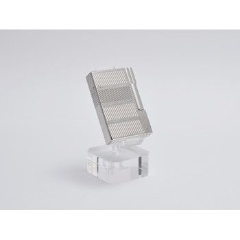 Estremamente elegante e moderno, l'accendino Gatsby si caratterizza per un design dalle linee molto pulite. Simile alla linea 2, se ne differenzia per le dimensioni più contenute, che lo rendono molto maneggevole e pratico. Questa versione è placcata palladio con una decorazione a fasce di linee oblique.