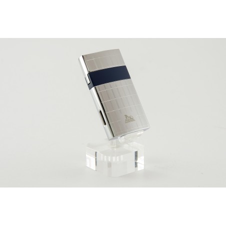 Circular Mantova è un accendino flower jet flame prodotto dal noto marchio Lubinski, per una fiamma costante e stabile anche in condizioni di forte vento. Dal design elegante, è realizzato con materiali di qualità. Questa versione presenta una finitura cromo con motivo decorativo a quadri e fascia blu.