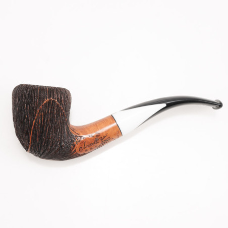 Il siciliano Salvatore Amorelli inizia a realizzare pipe nel 1982 e da subito la sua forza sta nella scelta della materia prima: la radica di Sicilia, rinomata per leggerezza e porosità, e la radica calabrese, che nel tempo ha in larga parte sostituito quella siciliana per la scarsità di tagliatori sull’isola. Gli abbozzi vengono stagionati in Sicilia all’aria aperta per 5 lunghi anni, per essere poi lavorati da Salvatore e dai suoi collaboratori nel piccolo laboratorio di Caltanissetta. Amorelli produce sei serie, distinte per forma e non per qualità: Busbee (il cui bocchino presenta un prestigioso intarsio in radica a forma di U, curvato a mano con l’ausilio dell’acqua e del fuoco), Frac, Nail, Ghibli, Lyra e Fish Tail. Il segno distintivo delle pipe Amorelli è costituito dalla barretta d’oro 18 carati applicata sul cannello e sul bocchino, allineata perfettamente per unire i due elementi. La categoria di pipe prodotte solo con superficie liscia, in tonalità chiara e prive di mastice, è contraddistinta da stelle. Per documentare la perfezione del legno anche all’interno del fornello, Amorelli rinuncia alla pennellatura di polvere di carbone. La meticolosità nella selezione dei materiali, l’altissimo livello nella lavorazione artigianale e l’attenzione per i dettagli fanno di Amorelli uno dei marchi più apprezzati da fumatori e collezionisti.