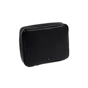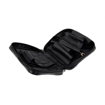 Trousse per 5 pipe in pelle nera, completa di porta-accessori. Chiusura a zip.