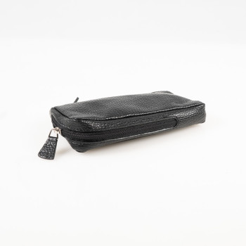 Astuccio per 1 pipa in pelle martellata nera, completo di busta portatabacco. Questo accessorio è la soluzione pratica e poco ingombrante per trasportare la vostra pipa e del tabacco sfuso. La sezione dedicata al tabacco è rivestita in lattice: questo evita di farlo seccare, mantenendolo in un perfetto stato di conservazione. Chiusure a zip.