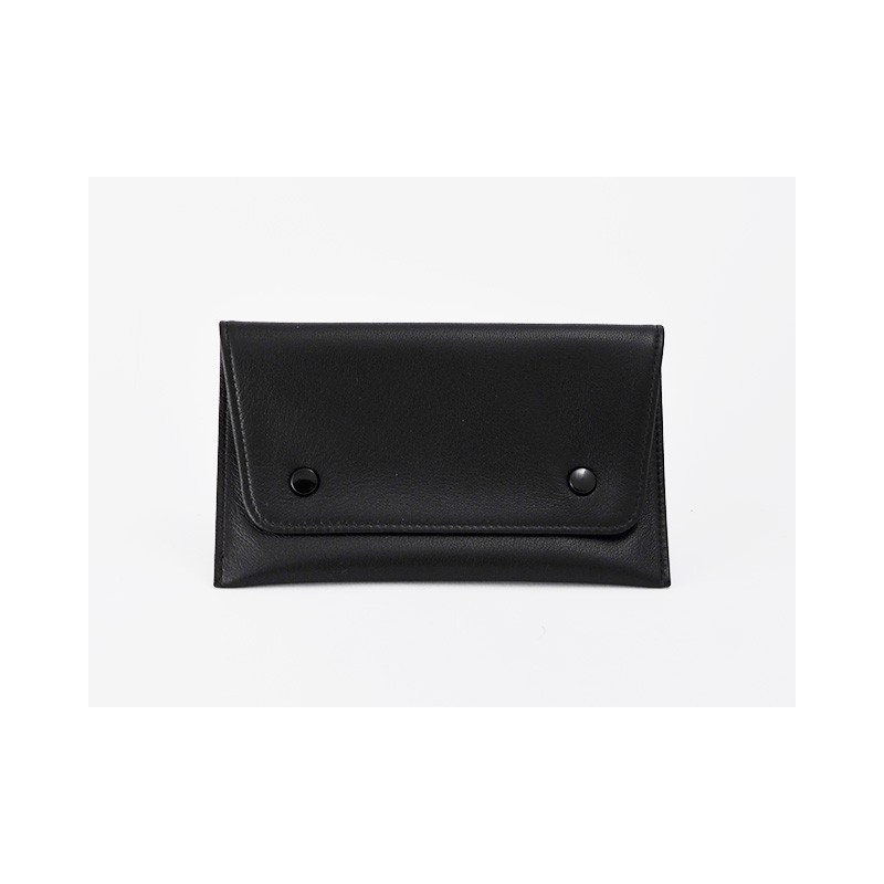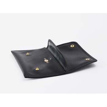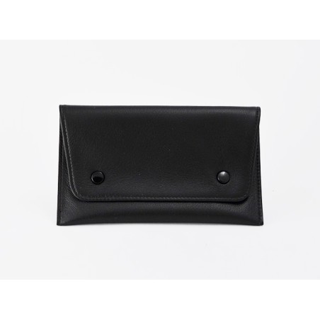 Busta portatabacco modello Button in pelle nera con patta. Chiusura a 2 bottoni.