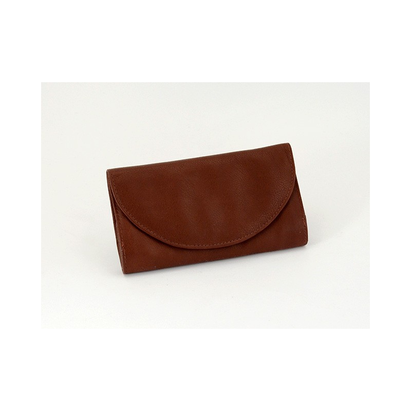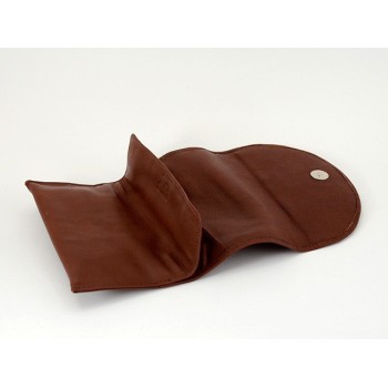 Busta portatabacco modello Roll-up in nappa color cognac con patta arrotondata. Chiusura a calamita.