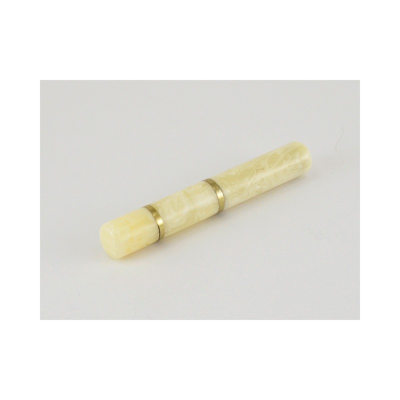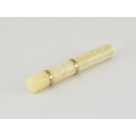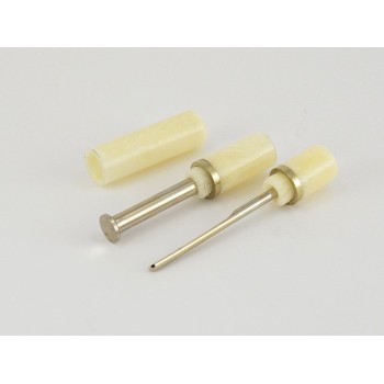 Curapipe chiuso in metallo e metacrilato avorio. All'apertura si articola in 3 pezzi con apertura a vite: cappuccio, pigino e punta.