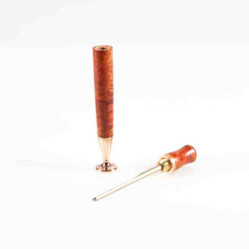 Curapipe in radica. Pigino esterno in rame e punta interna con apertura a vite.