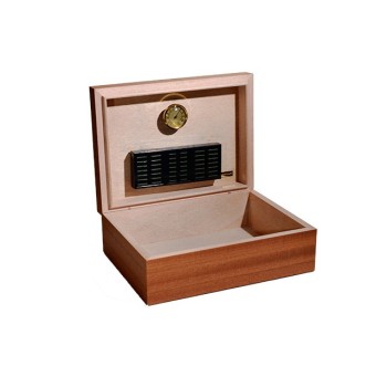 Humidor da 50 sigari con finitura in legno naturale Sapelli e interno in mogano. Umidificatore e igrometro inclusi.