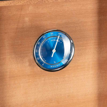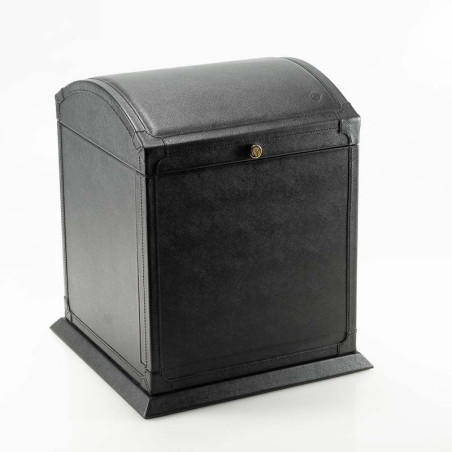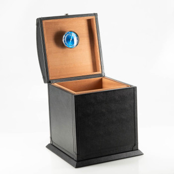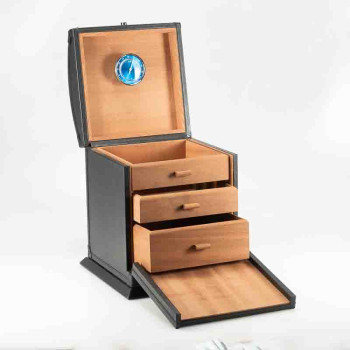 Humidor da 200 sigari in legno con 3 cassetti. Finitura in pelle nera e interno in mogano. Igrometro incluso.