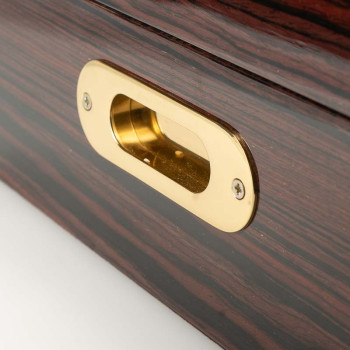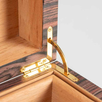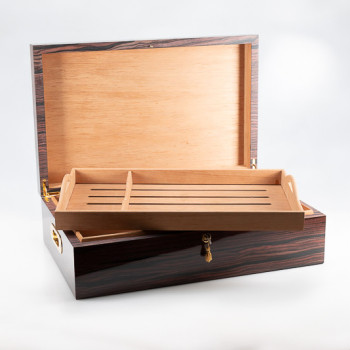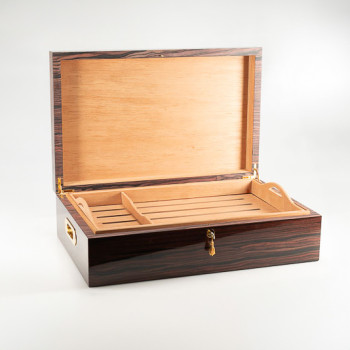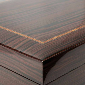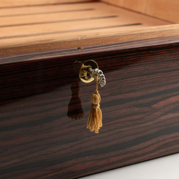 Humidor da 300 sigari in legno con finitura color palissandro. Apertura con chiave. Igrometro incluso.