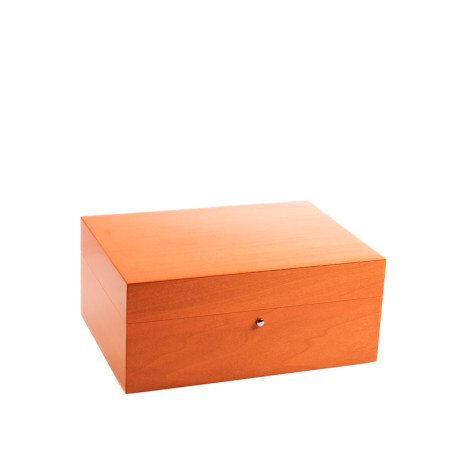 Humidor per toscani in legno con finitura arancione. Capacità 20 sigari. Igrometro incluso.