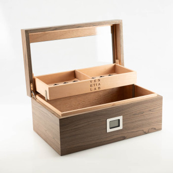 VenetiaLab è un un brand dedicato agli appassionati del sigaro e a coloro che desiderano godersi i momenti di piacere e di relax. Offre una selezione di prodotti e accessori di alta qualità per veri intenditori e per l’appagamento dell’anima. VenetiaLab si ispira alla “regio X Venetia et Histria” di epoca romana, che comprendeva una vasta area dell’Italia nord-orientale. Terre famose per la loro ricchezza, la loro cultura e la meravigliosa diversità paesaggistica racchiusa tra le Dolomiti e la Laguna di Venezia. Tra gli accessori dedicati agli appassionati di sigaro, gli humidor rivestono un ruolo di primaria importanza. Sono realizzati in legno massello, che si ricava dal durame dell’albero, ossia dalla parte centrale del tronco: questo tipo di legno è molto pregiato ed è noto per la sua peculiare resistenza e per l’alta qualità, che ne assicura l’ottima resa in ogni suo utilizzo. Non viene sottoposto ad alcun trattamento chimico ed è completamente naturale, riciclabile e rigenerabile. Dal punto di vista estetico, offre una gamma di suggestive e calde colorazioni naturali che, con il tempo, tendono a trasformarsi e a scurirsi, risultando sempre molto eleganti.