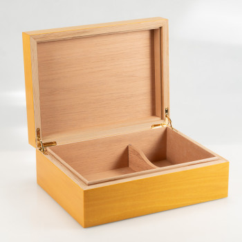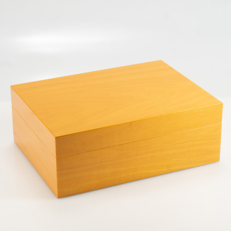 Caratterizzata da una vivido color giallo e arricchita da una splendida finitura lucida, questa scatola portasigari della Collezione Roma aggiungerà un vivace pizzico di colore in un raffinato arredamento moderno. Ideale per contenere 40 sigari ca., è interamente realizzata in legno di cedro, esternamente laccato con lacca poliestere. Cerniere in metallo galvanizzato color oro.