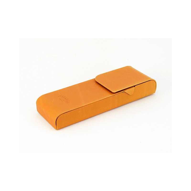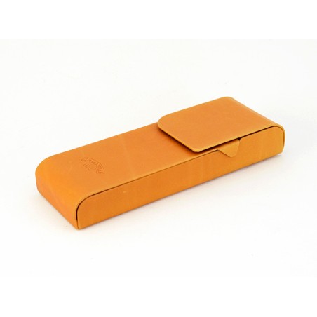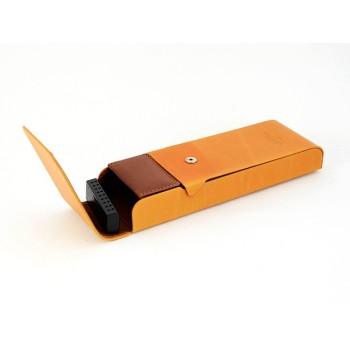 Portasigari da tasca da 3 sigari formato "Corona". Umidificatore incluso. Lavorazione in pelle color beige e cuoio.