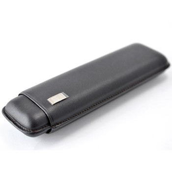 Portasigari da tasca mod. Sidecar per 2 sigari formato “Churchill”. Lavorazione in pelle nera.