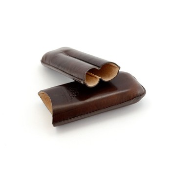 Portasigari da tasca per 2 sigari formato “Robusto”. Lavorazione in cuoio marrone.