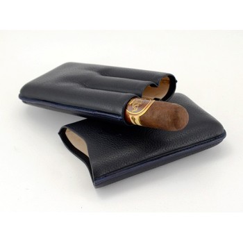 Portasigari da tasca da 3 sigari formato “Duke“ Ring 50. Lavorazione in pelle blu.