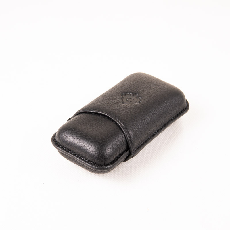 Portasigari da tasca da 2 sigari formato “Robusto“. Lavorazione in pelle nera.