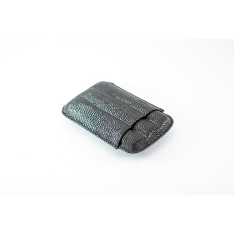 Portasigari da tasca da 3 sigari formato “Robusto“. Lavorazione in pelle nera.
