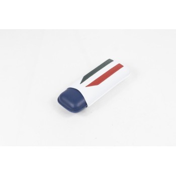 Portasigari da tasca mod. Italia da 2 sigari formato “Duke“ Ring 56. Lavorazione in pelle: base blu e parte superiore bianca con bandiera italiana.