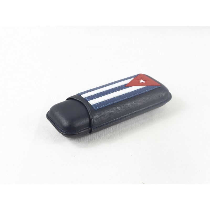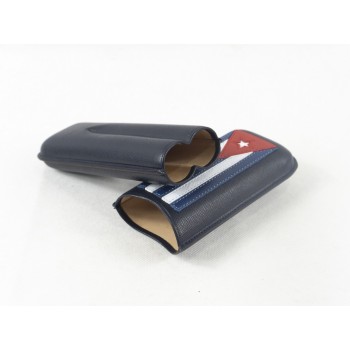Portasigari da tasca mod. Cuba da 2 sigari formato “Duke“ Ring 56. Lavorazione in pelle: base nera e parte superiore nera con bandiera cubana.