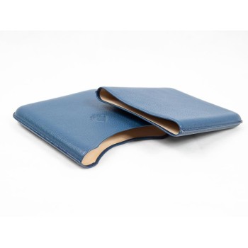 Portasigari da tasca da 5 sigari formato “Double Corona“. Lavorazione in pelle azzurra.