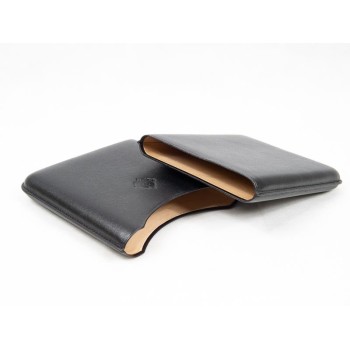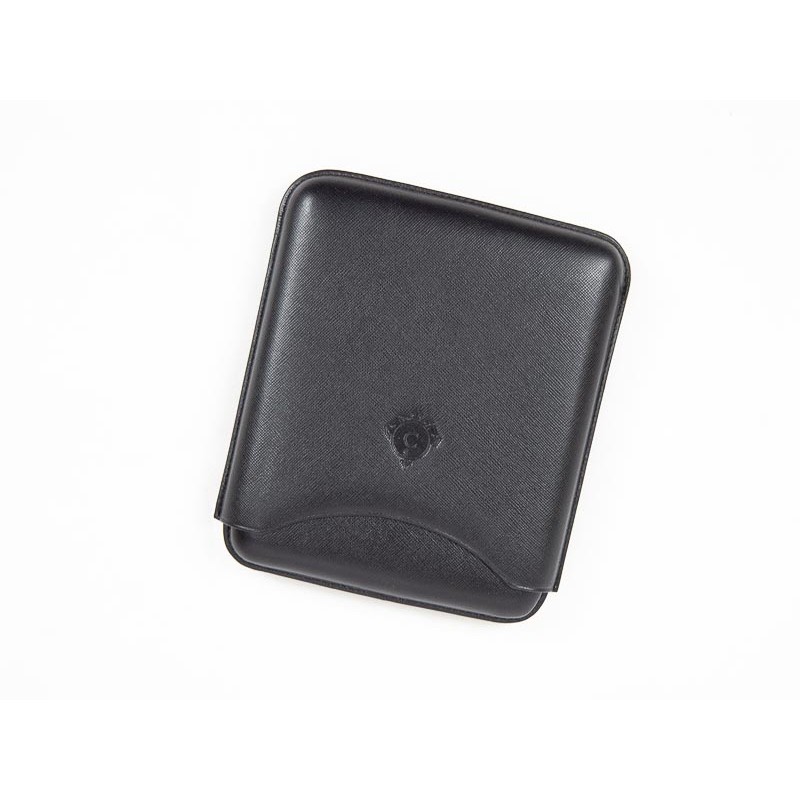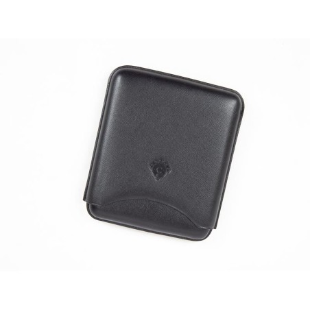 Portasigari da tasca da 5 sigari formato “Double Corona“. Lavorazione in pelle nera saffiano.