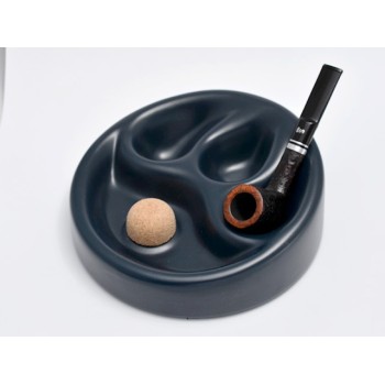 Posacenere battipipa tondo in ceramica blu effetto opaco, completo di 3 poggiapipa.
