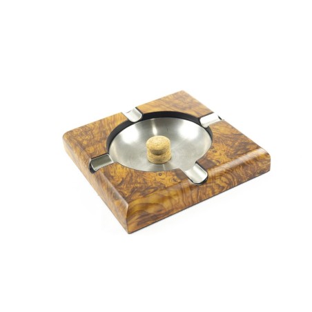 Posacenere per pipa o per sigaro (4 sigari) con interno tondo in metallo e base quadrata in radica.
