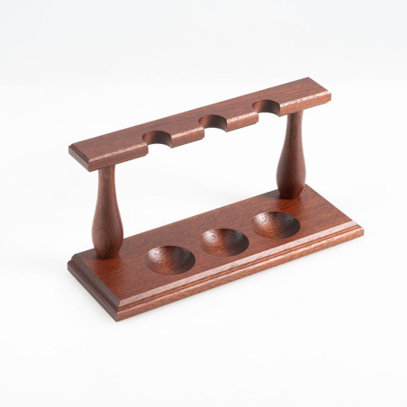 Poggiapipe/rastrelliera a 3 posti in legno di noce. Posizione delle pipe: verticale.