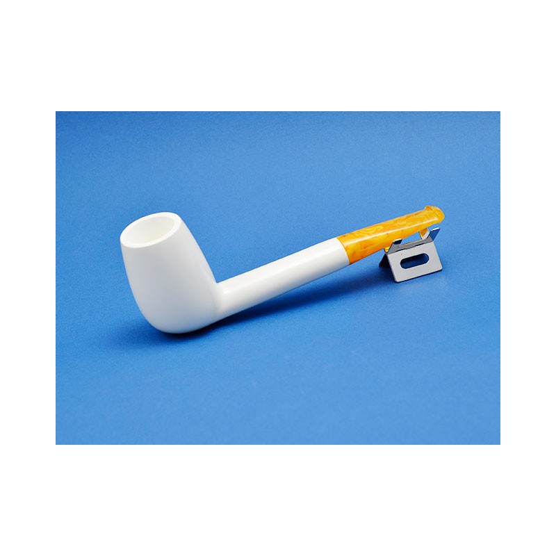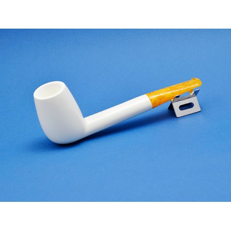 Lubinski propone pipe di schiuma esclusivamente turche di blocco, realizzate su disegno dai fratelli Sekergioglu di Eşkisehir. Abitualmente la classificazione delle pipe di schiuma nelle forme classiche tiene conto della dimensione del blocco grezzo e, principalmente, dell’altezza del fornello: da ciò la classificazione per gruppi dal 5 (piccole) al 10 (giganti). Tutte astucciate singolarmente con un procedimento artigianale unico. La schiuma di mare, generalmente nota come la “dea bianca”, è composta da silicato idrato di magnesio (denominato scientificamente sepiolite), che si trova in Turchia e in Tanzania. La sua origine è incerta, ma si presume che l’acqua calcarea dei fiumi abbia eroso i sassi magnesiaci e depositato il fango formatosi; possibili mutamenti geologici avrebbero determinato il cambiamento del corso del fiume lasciando dietro di sé, a una profondità tra i quaranta e gli ottanta metri, i depositi alluvionali, che sarebbero poi stati pressati in blocchi in seguito alla pressione esercitata dalle masse tettoniche sovrastanti. Se da un lato esistono innumerevoli leggende sulla data di nascita della prima pipa ricavata da questo materiale particolarmente leggero, dall’altro lato è certo che le prime pipe di schiuma di mare europee sono state fabbricate in Ungheria e importate da alcuni aristocratici a Vienna, dove si sviluppò un centro di lavorazione di schiuma di mare. Intorno al 1870 oltre duecento aziende situate nella capitale austriaca producevano pipe di silicato idrato di magnesio e il termine “schiuma di Vienna” venne introdotto nella letteratura sulle pipe. La migliore schiuma di mare impiegata nella lavorazione delle pipe è quella a blocchi proveniente dalla Turchia; il materiale originario della Tanzania è invece geologicamente molto più giovane di quello turco (estratto prevalentemente nella regione circostante Eşkisehir), non conferisce la stessa resa e non presenta lo stesso colore veramente bianco. Le pipe in schiuma di mare a blocchi vengono solitamente realizzate al tornio: i blocchi vengono dapprima tagliati nella giusta dimensione, ammorbiditi nell’acqua e infine, ancora umidi, torniti e forati; spesso vengono poi applicate opere d’intaglio o ornamenti. Mentre in passato si intingevano le teste tornite oppure scolpite nel bianco di balena, oggi le si intinge nella cera bianca schiarita. Le pipe di schiuma hanno conquistato molti fumatori perché non necessitano del rodaggio, non subiscono bruciature e consentono al tabacco di conservare il suo aroma; la pipa, dunque, “non se la prende” se il fumatore fuma tabacchi diversi. Il desiderio della maggior parte dei fumatori è che il colore della loro “dea bianca” muti gradualmente assumendo dapprima il colore ambra, poi rosa, per approdare infine al marrone scuro. Per raggiungere tale obiettivo è tuttavia necessario fumare la pipa diverse centinaia di volte, tenendo ben presente che la prima volta va fumata con molta cautela.
