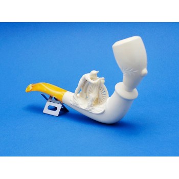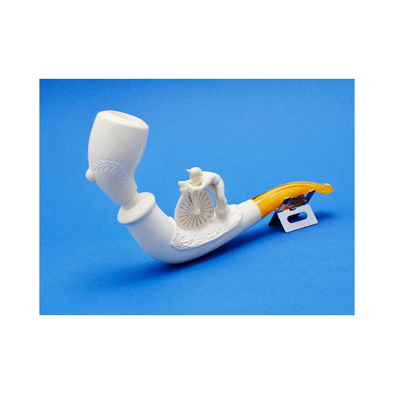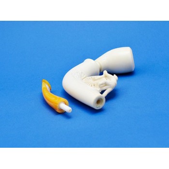 Lubinski propone pipe di schiuma esclusivamente turche di blocco, realizzate su disegno dai fratelli Sekergioglu di Eşkisehir. Abitualmente la classificazione delle pipe di schiuma nelle forme classiche tiene conto della dimensione del blocco grezzo e, principalmente, dell’altezza del fornello: da ciò la classificazione per gruppi dal 5 (piccole) al 10 (giganti). Tutte astucciate singolarmente con un procedimento artigianale unico. La schiuma di mare, generalmente nota come la “dea bianca”, è composta da silicato idrato di magnesio (denominato scientificamente sepiolite), che si trova in Turchia e in Tanzania. La sua origine è incerta, ma si presume che l’acqua calcarea dei fiumi abbia eroso i sassi magnesiaci e depositato il fango formatosi; possibili mutamenti geologici avrebbero determinato il cambiamento del corso del fiume lasciando dietro di sé, a una profondità tra i quaranta e gli ottanta metri, i depositi alluvionali, che sarebbero poi stati pressati in blocchi in seguito alla pressione esercitata dalle masse tettoniche sovrastanti. Se da un lato esistono innumerevoli leggende sulla data di nascita della prima pipa ricavata da questo materiale particolarmente leggero, dall’altro lato è certo che le prime pipe di schiuma di mare europee sono state fabbricate in Ungheria e importate da alcuni aristocratici a Vienna, dove si sviluppò un centro di lavorazione di schiuma di mare. Intorno al 1870 oltre duecento aziende situate nella capitale austriaca producevano pipe di silicato idrato di magnesio e il termine “schiuma di Vienna” venne introdotto nella letteratura sulle pipe. La migliore schiuma di mare impiegata nella lavorazione delle pipe è quella a blocchi proveniente dalla Turchia; il materiale originario della Tanzania è invece geologicamente molto più giovane di quello turco (estratto prevalentemente nella regione circostante Eşkisehir), non conferisce la stessa resa e non presenta lo stesso colore veramente bianco. Le pipe in schiuma di mare a blocchi vengono solitamente realizzate al tornio: i blocchi vengono dapprima tagliati nella giusta dimensione, ammorbiditi nell’acqua e infine, ancora umidi, torniti e forati; spesso vengono poi applicate opere d’intaglio o ornamenti. Mentre in passato si intingevano le teste tornite oppure scolpite nel bianco di balena, oggi le si intinge nella cera bianca schiarita. Le pipe di schiuma hanno conquistato molti fumatori perché non necessitano del rodaggio, non subiscono bruciature e consentono al tabacco di conservare il suo aroma; la pipa, dunque, “non se la prende” se il fumatore fuma tabacchi diversi. Il desiderio della maggior parte dei fumatori è che il colore della loro “dea bianca” muti gradualmente assumendo dapprima il colore ambra, poi rosa, per approdare infine al marrone scuro. Per raggiungere tale obiettivo è tuttavia necessario fumare la pipa diverse centinaia di volte, tenendo ben presente che la prima volta va fumata con molta cautela.