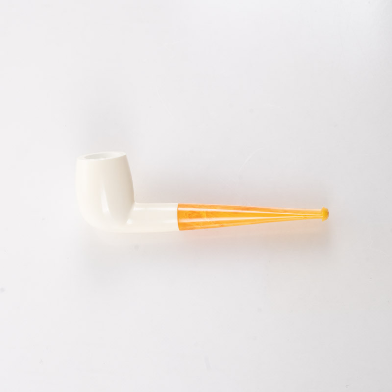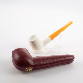 Lubinski propone pipe di schiuma esclusivamente turche di blocco, realizzate su disegno dai fratelli Sekergioglu di Eşkisehir. Abitualmente la classificazione delle pipe di schiuma nelle forme classiche tiene conto della dimensione del blocco grezzo e, principalmente, dell’altezza del fornello: da ciò la classificazione per gruppi dal 5 (piccole) al 10 (giganti). Tutte astucciate singolarmente con un procedimento artigianale unico. La schiuma di mare, generalmente nota come la “dea bianca”, è composta da silicato idrato di magnesio (denominato scientificamente sepiolite), che si trova in Turchia e in Tanzania. La sua origine è incerta, ma si presume che l’acqua calcarea dei fiumi abbia eroso i sassi magnesiaci e depositato il fango formatosi; possibili mutamenti geologici avrebbero determinato il cambiamento del corso del fiume lasciando dietro di sé, a una profondità tra i quaranta e gli ottanta metri, i depositi alluvionali, che sarebbero poi stati pressati in blocchi in seguito alla pressione esercitata dalle masse tettoniche sovrastanti. Se da un lato esistono innumerevoli leggende sulla data di nascita della prima pipa ricavata da questo materiale particolarmente leggero, dall’altro lato è certo che le prime pipe di schiuma di mare europee sono state fabbricate in Ungheria e importate da alcuni aristocratici a Vienna, dove si sviluppò un centro di lavorazione di schiuma di mare. Intorno al 1870 oltre duecento aziende situate nella capitale austriaca producevano pipe di silicato idrato di magnesio e il termine “schiuma di Vienna” venne introdotto nella letteratura sulle pipe. La migliore schiuma di mare impiegata nella lavorazione delle pipe è quella a blocchi proveniente dalla Turchia; il materiale originario della Tanzania è invece geologicamente molto più giovane di quello turco (estratto prevalentemente nella regione circostante Eşkisehir), non conferisce la stessa resa e non presenta lo stesso colore veramente bianco. Le pipe in schiuma di mare a blocchi vengono solitamente realizzate al tornio: i blocchi vengono dapprima tagliati nella giusta dimensione, ammorbiditi nell’acqua e infine, ancora umidi, torniti e forati; spesso vengono poi applicate opere d’intaglio o ornamenti. Mentre in passato si intingevano le teste tornite oppure scolpite nel bianco di balena, oggi le si intinge nella cera bianca schiarita. Le pipe di schiuma hanno conquistato molti fumatori perché non necessitano del rodaggio, non subiscono bruciature e consentono al tabacco di conservare il suo aroma; la pipa, dunque, “non se la prende” se il fumatore fuma tabacchi diversi. Il desiderio della maggior parte dei fumatori è che il colore della loro “dea bianca” muti gradualmente assumendo dapprima il colore ambra, poi rosa, per approdare infine al marrone scuro. Per raggiungere tale obiettivo è tuttavia necessario fumare la pipa diverse centinaia di volte, tenendo ben presente che la prima volta va fumata con molta cautela.