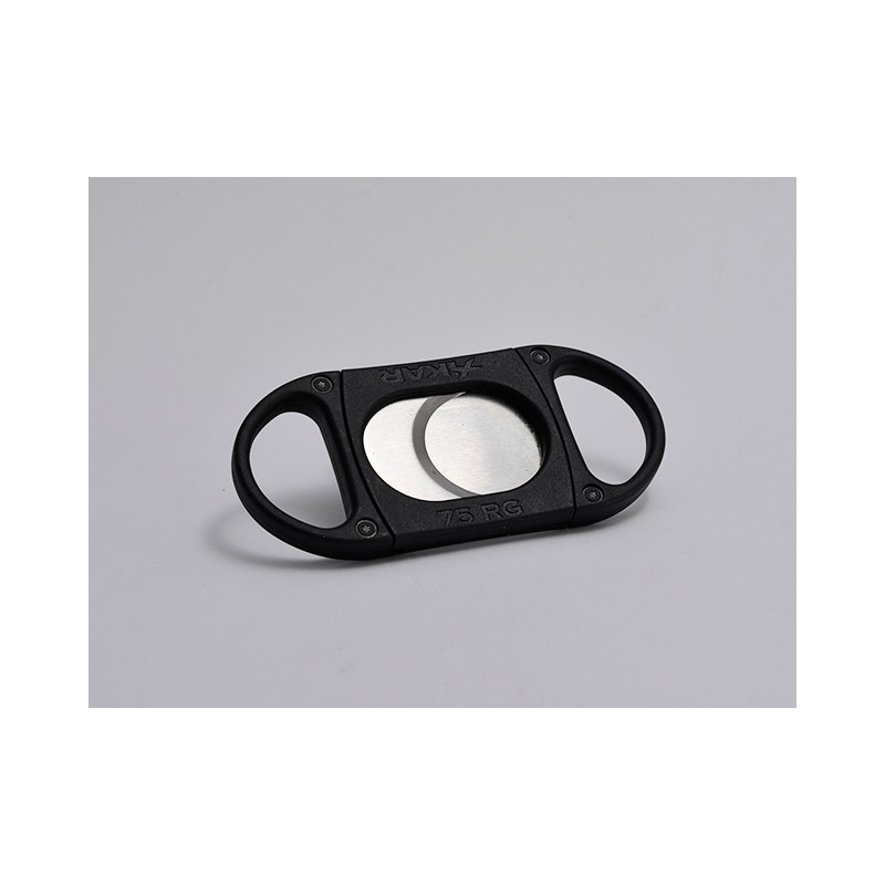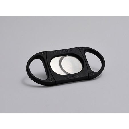 Tagliasigari a doppia ghigliottina, con profilo sagomato che funge da poggiasigari. Le lame in acciaio inox 440 (57 HRC), con meccanismo a molla integrato, assicurano un taglio fluido, preciso e pulito, prevenendo qualsiasi danno al sigaro. Design ergonomico, con manici ampi in resina nera, che offrono una presa comoda e sicura. Ring Gauge: 75.