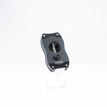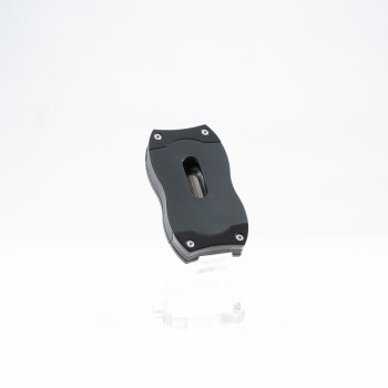 Tagliasigari V-Cut a ghigliottina, sagomato per adattarsi saldamente alla mano. Corpo nero e finitura gommata resistente. Lama in acciaio inox con rilascio a molla, appositamente progettata per scorrere in modo fluido e preciso con angolo acuto e profondo, in modo da penetrare nel sigaro fino a 7 mm e garantire così un taglio agevole e pulito. Ring Gauge: 60+, per sigari di grandi dimensioni.