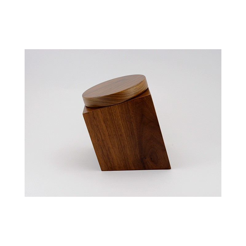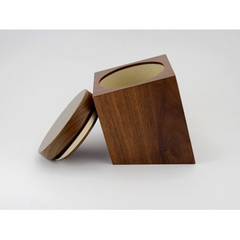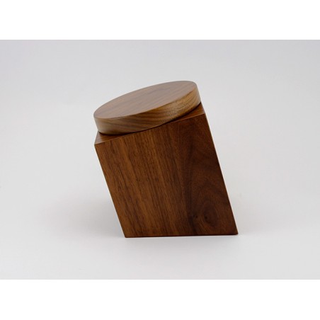 Vaso portatabacco in noce, obliquo a sezione quadrata e coperchio a sezione circolare. Umidificatore incluso.